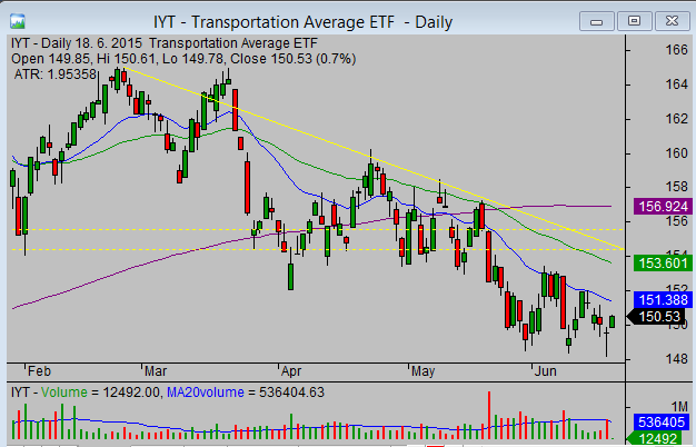 Airline ETF is part of the major transportation sector. My major ETF Trading strategy idea is to use relative strength or weakness for ETF trading. I like to compare FAA with another sector ETF – Transportation exchange traded fund with symbol IYT and also with broad index ETF for the S&P500 index – SPY.